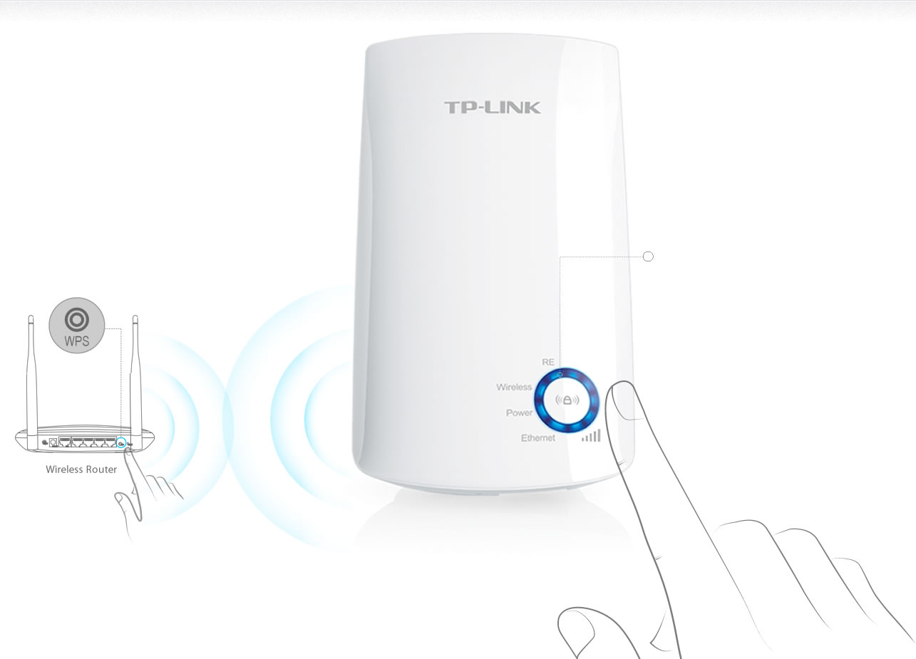 Không cần dây cắm, khi ở trong phạm vi phủ sóng của mạng không dây hiện hành, người dùng có thể dễ dàng mở rộng phạm vi phủ sóng chỉ bằng các nhấn nút WPS trên Router của mình, sau đó nhấn nút mở rộng sóng trên TL-WA850RE hoặc ngược lại. Thêm một lần nhấn nút ghép cặp có thể nhanh chóng thiết lập một kết nối bảo mật với thiết bị khách.