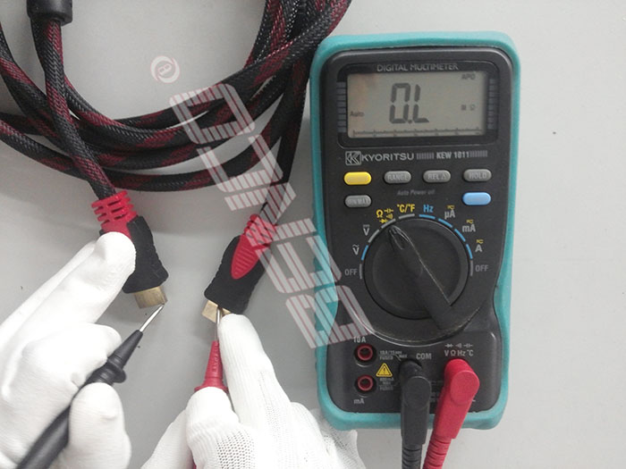 Để kiểm chứng dây cáp HDMI có đảm bảo hay không mà không cần rạch ra như trên, có thể sử dụng đồng hồ vạn năng, tiến hành đo trở ở hai đầu vỏ bọc kim loại.