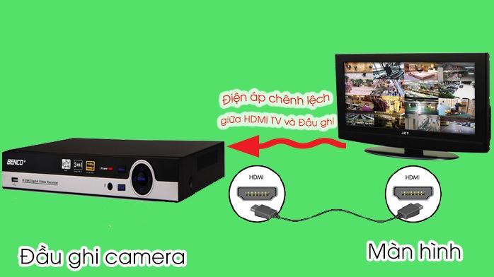 Luôn luôn có sự chênh lệch điện áp giữa các thiết bị đầu ghi hình và tivi. Khi kết nối đầu ghi hình với tivi, dòng điện quá áp từ tivi sẽ đi vào thiết bị đầu ghi thông qua cáp HDMI.