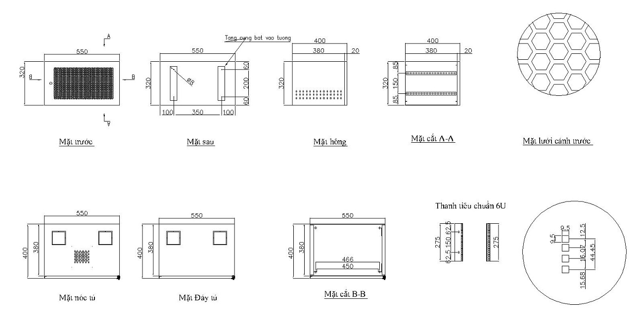 - Kết cấu khung: Quy cách tủ treo tường, cửa đột lưới tổ ong, tủ được thiết kế khung hàn liền chịu lực 4 thanh giằng được hàn gắn vào khung
