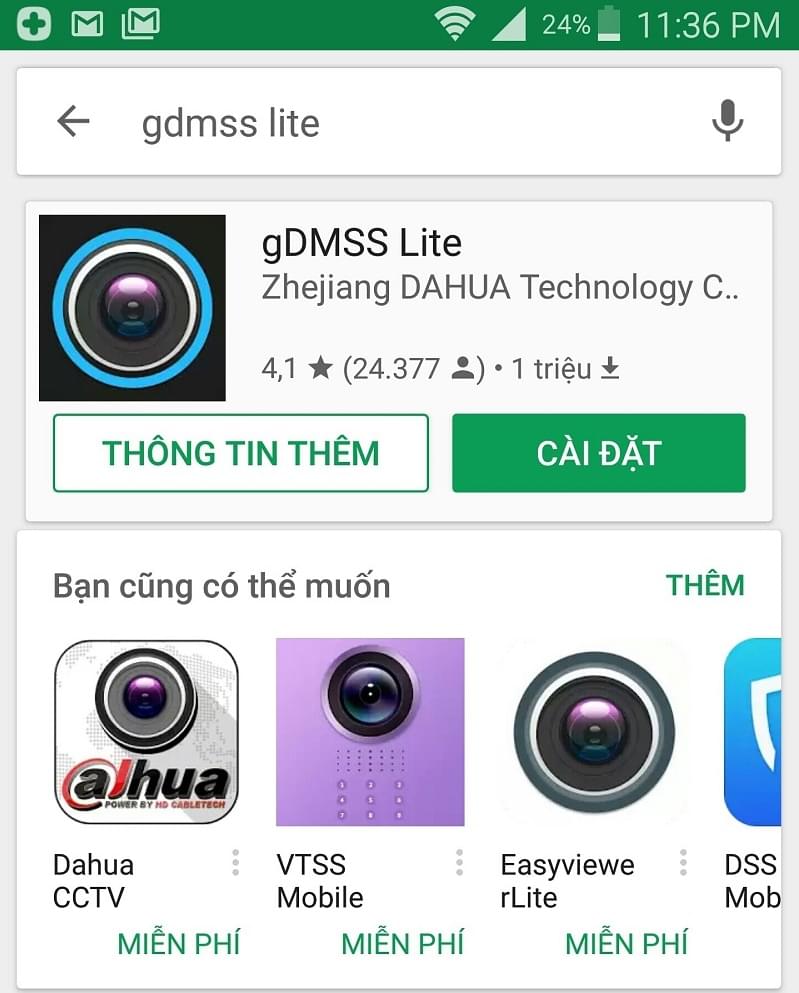 Bước 1 : Vào CH Play cài phần mềm gDMSS với điện thoại Android