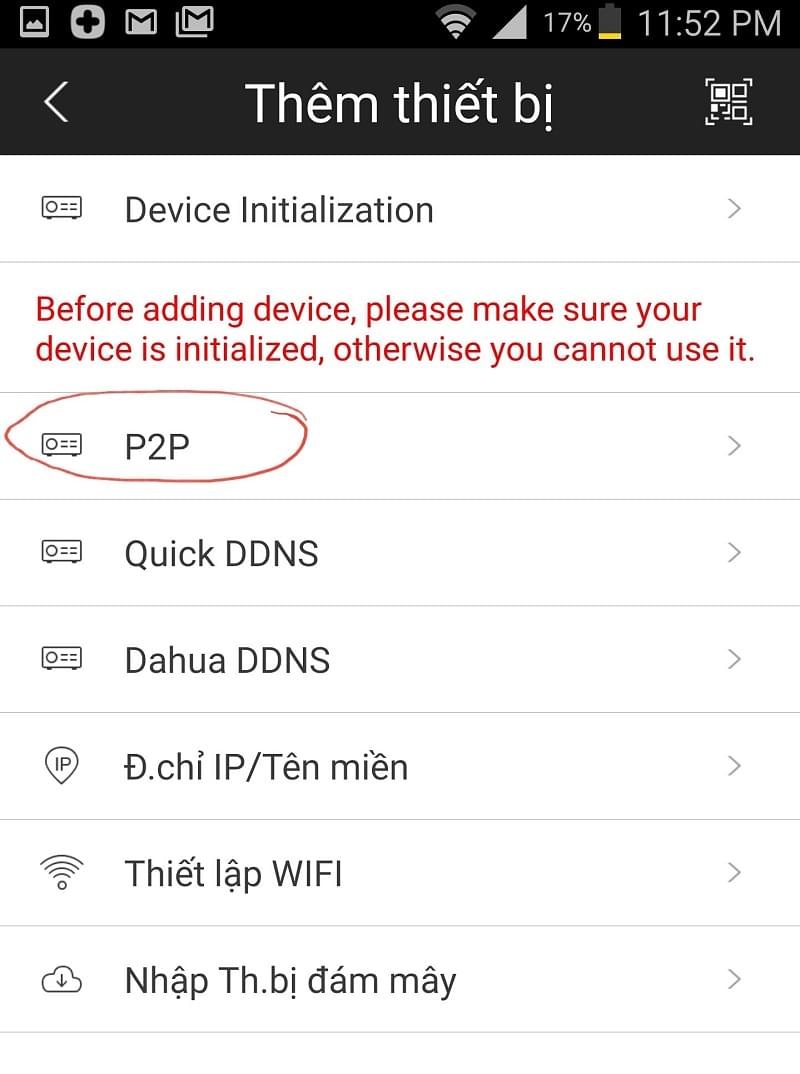 Chọn ngay mục đầu tiên P2P cho dễ