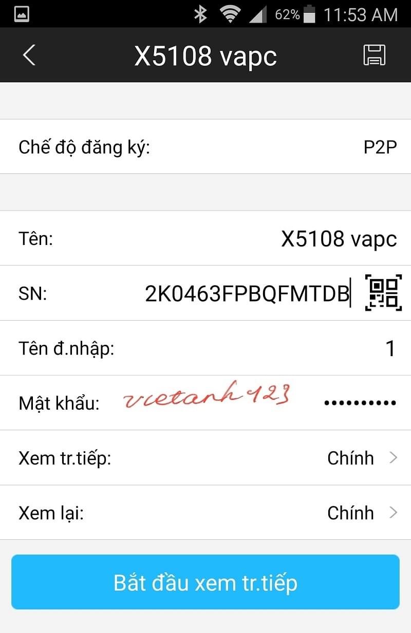 Nhập các thông số như hình dưới- sau khi nhập xong chọn " Bắt đầu xem trực tiếp"